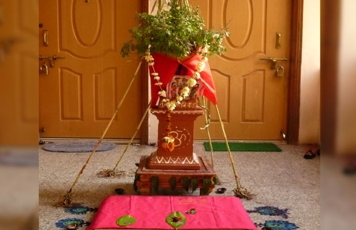 સૌથી પહેલા પૂજા સ્થળને શણગારો: સાંજે તુલસીના છોડ પાસે શેરડીથી મંડપ બનાવો.